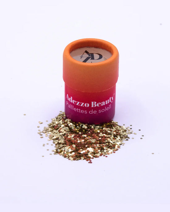 Paillettes biodégradables, 100% sans plastique. Designées en Provence. Pour un maquillage festif : visage, cheveux, corps.